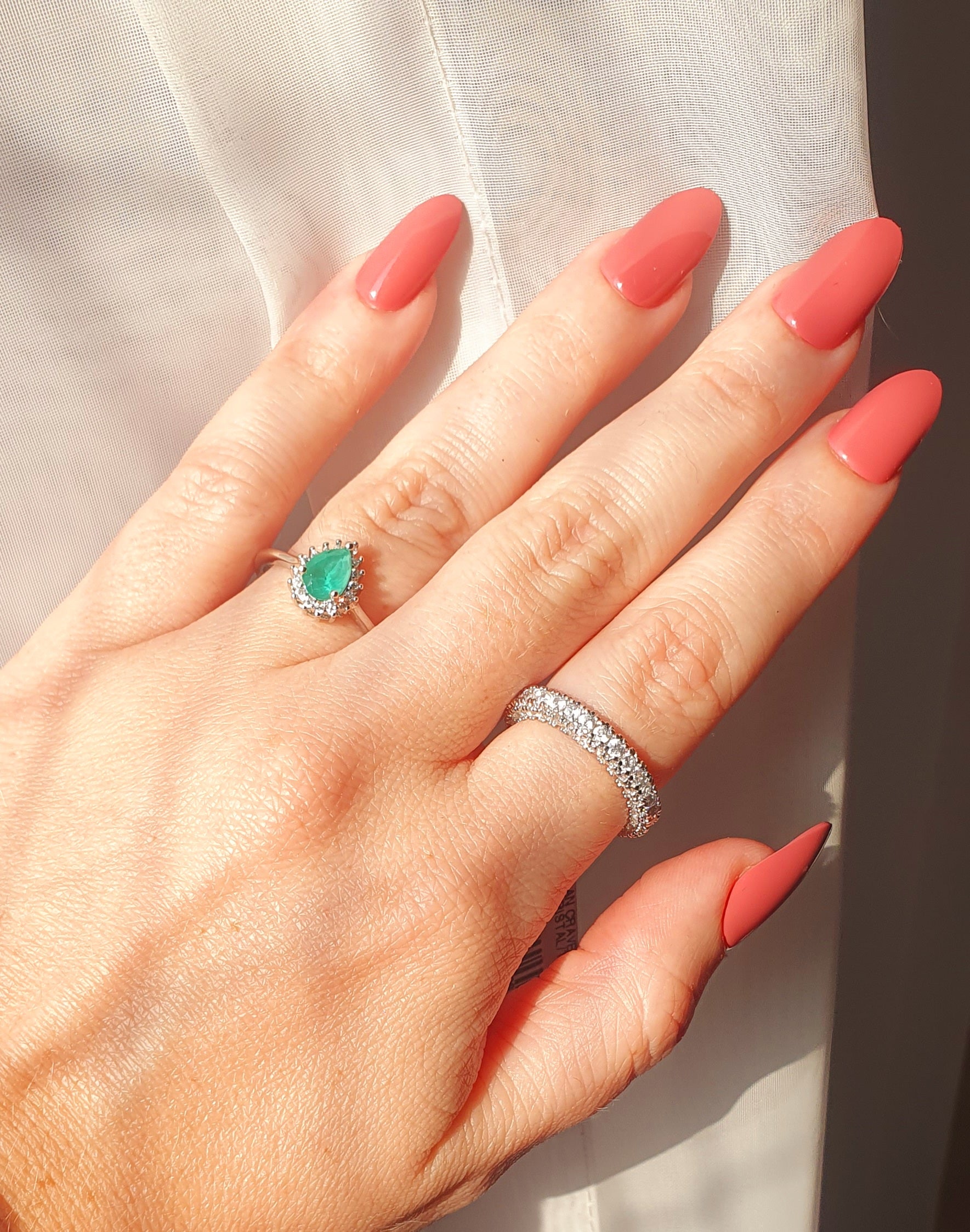 Solitário gota turmalina cravejada de cristais em ródio branco. Um verdadeiro encanto!