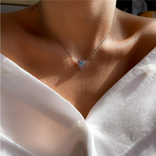 Apresentamos o nosso Encantador Conjunto de Colar e Brincos de Corações Cravejados de Cristais Coloridos, uma verdadeira celebração de qualidade, beleza e delicadeza. Este conjunto foi cuidadosamente projetado para adicionar um toque de brilho e cor às suas joias, destacando-se como um símbolo de elegância refinada.