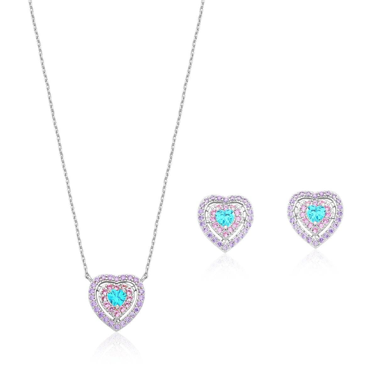 Conjunto coração cravação mesclada em ródio branco. Um verdadeiro encanto!