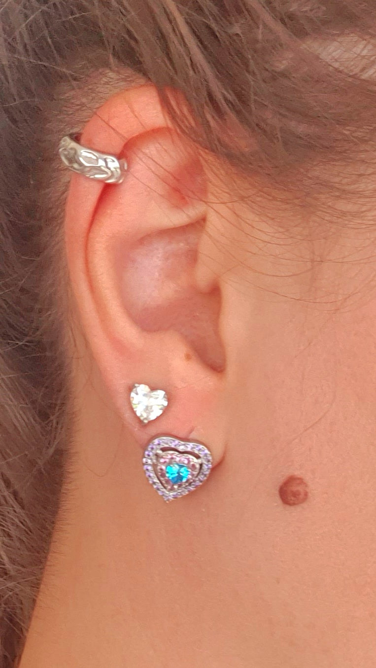 Cada peça, é meticulosamente cravejada com cristais coloridos que capturam a luz de maneira deslumbrante, criando um efeito luminoso e encantador. A forma do coração acrescenta um toque romântico e simbólico, tornando este conjunto uma escolha perfeita para ocasiões especiais ou para iluminar o seu dia a dia com um toque de sofisticação.